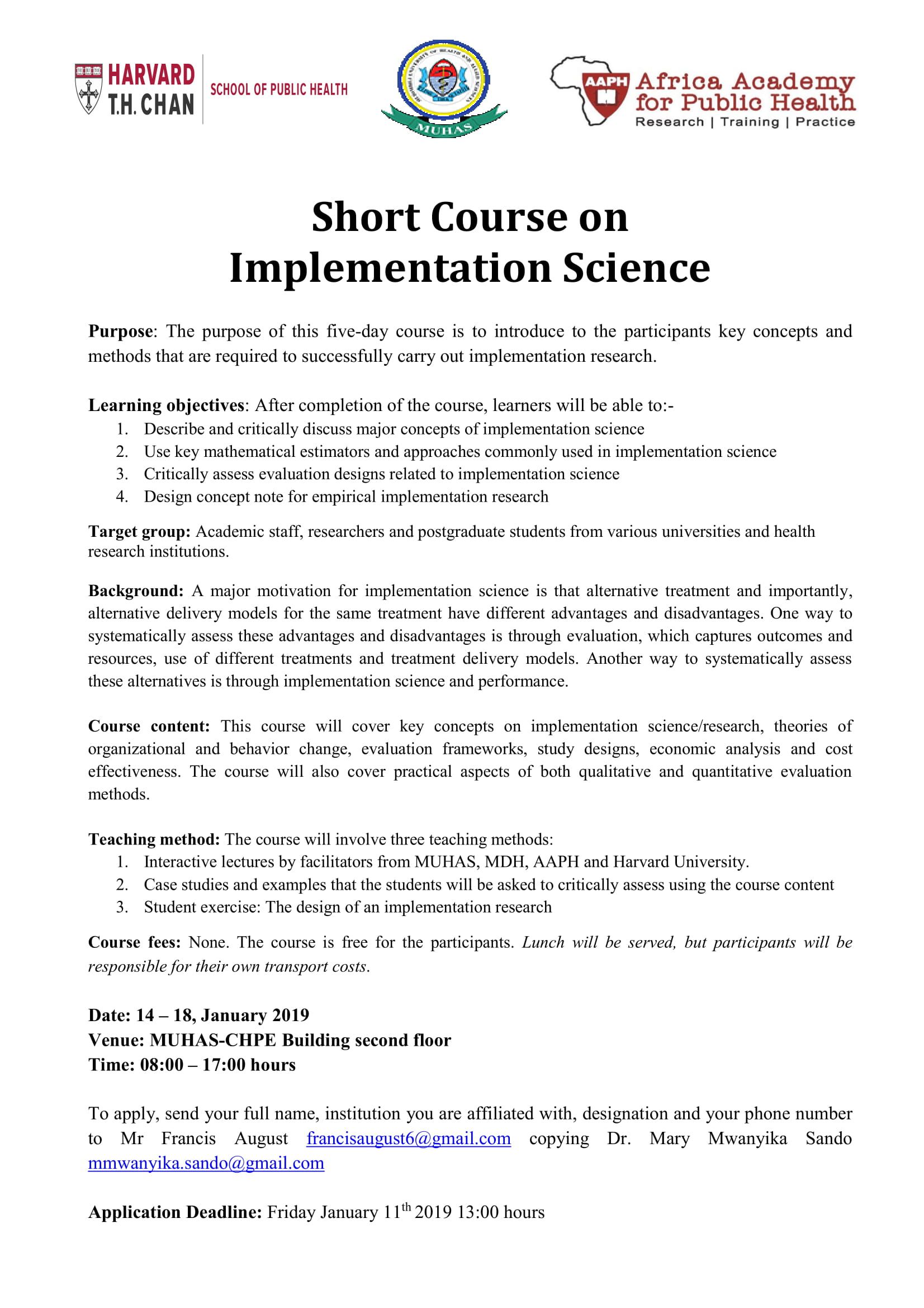 Muhimbili University On Twitter Short Course On Implementation Science Https T Co Bu5r92hnvy Twitter